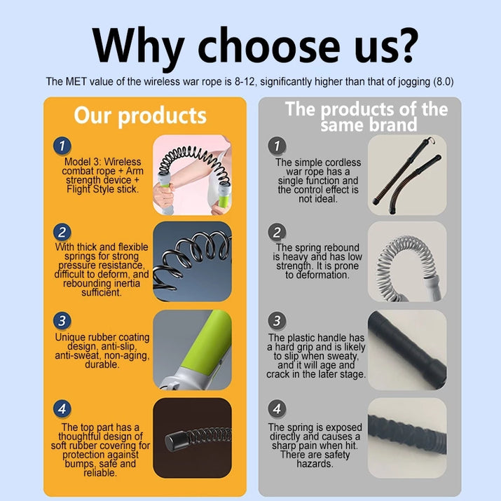 The innovative cordless design allows you to use these battle ropes without any anchoring equipment. This means you can perform your workouts anywhere—whether at home, in the gym, or outdoors—giving you complete freedom in your fitness routine.